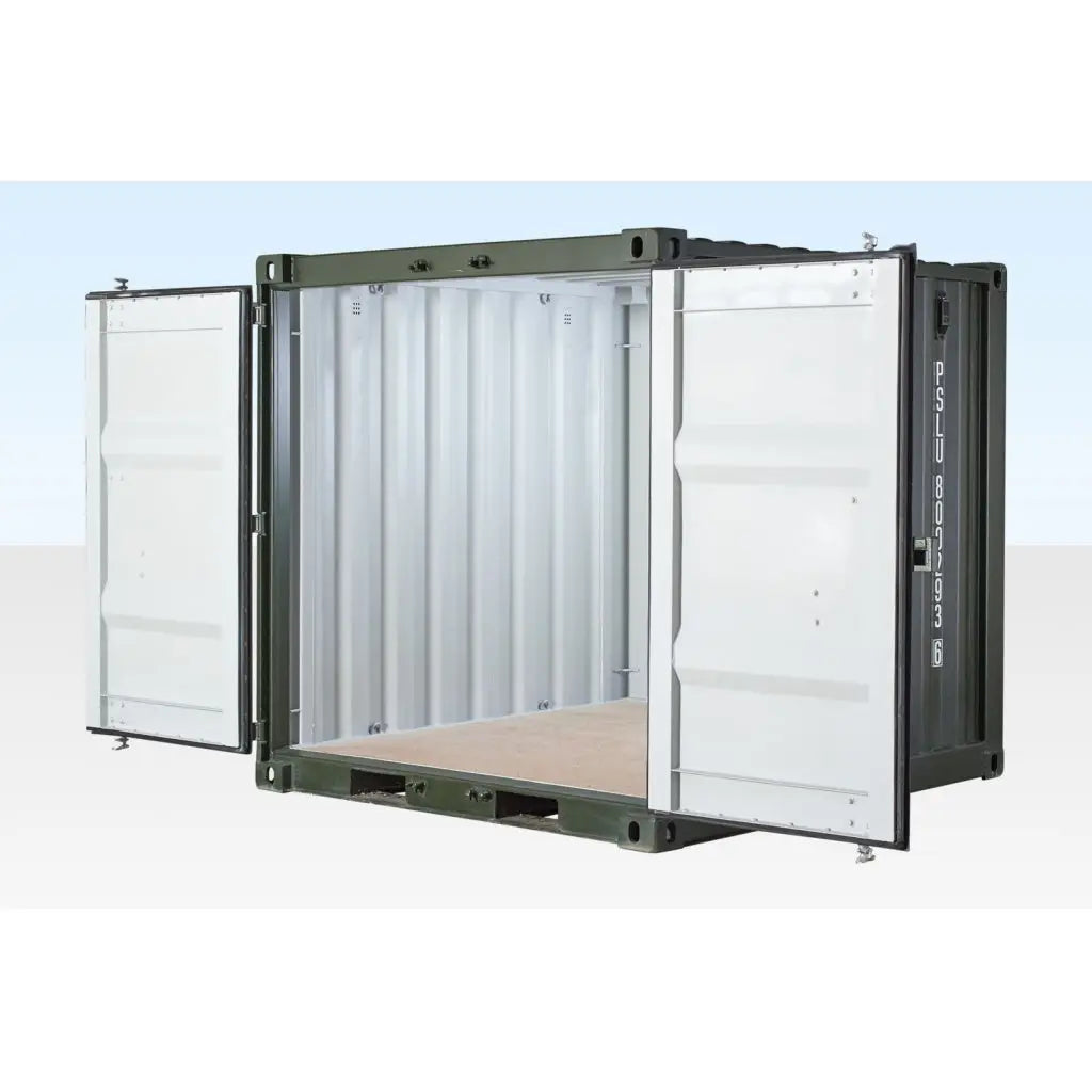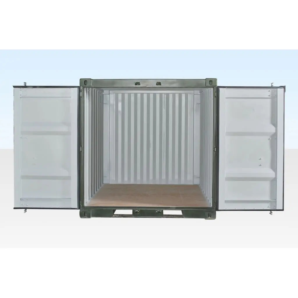 Este contentor marítimo de 8 pés também está disponível na cor azul.
