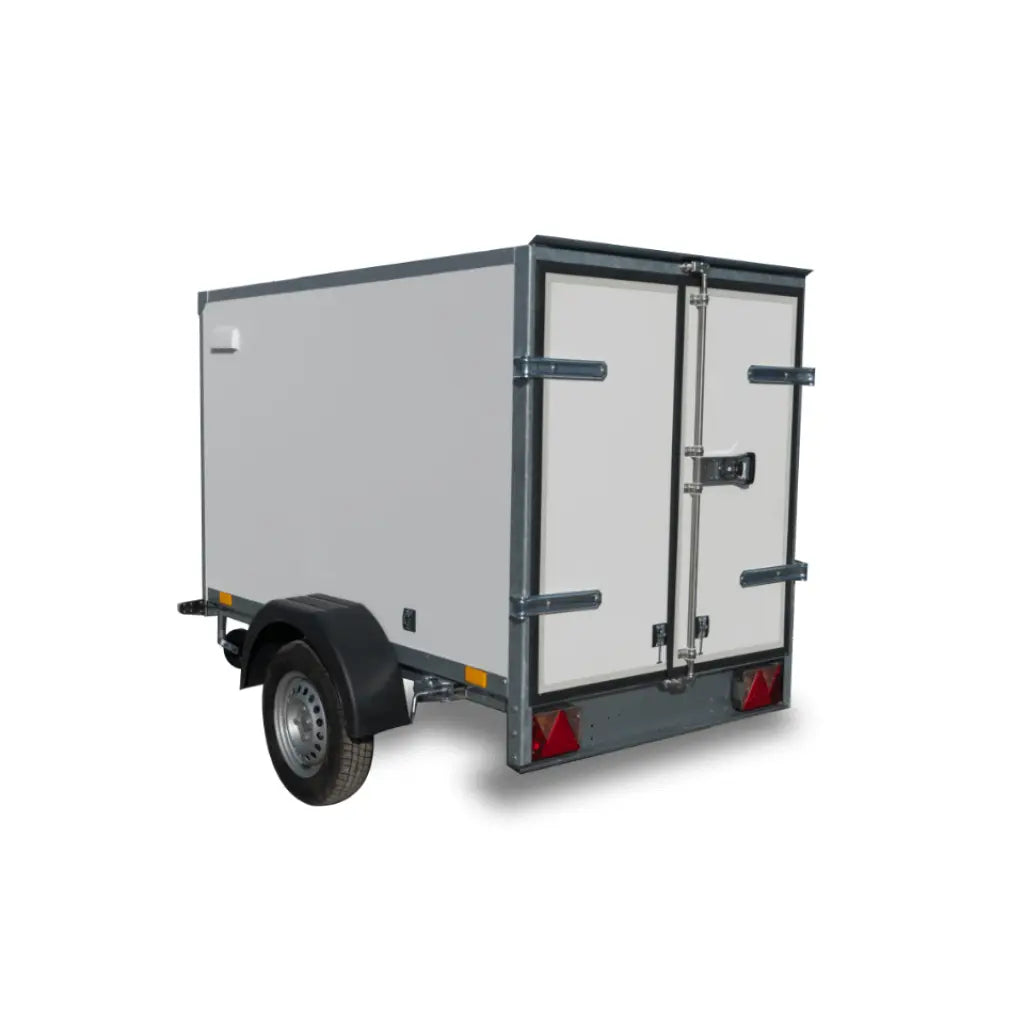 As duas rodas 165/70R13 proporcionam uma condução estável e segura, enquanto a roda jockey facilita as manobras. Este reboque tipo furgão é ideal para satisfazer as suas necessidades de transporte.